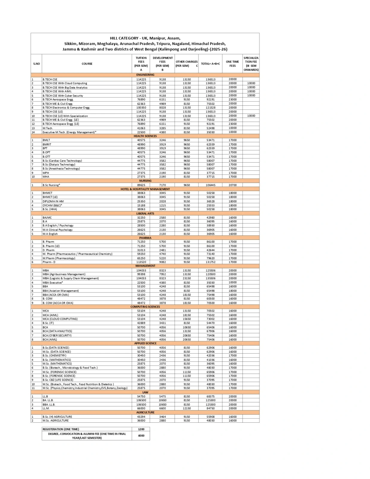 - A candidate after depositing the fee (in part or full amount), desires to withdraw his/her admission or does not join the University or does not deposit the balance amount of fee (if any) by the due date, shall be liable for the cancellation of his/her admission without any compensation by the University. The University shall be at liberty to fill his/her seat by offering to any other candidate and the fee, as well as any other charges deposited with the University, shall stand forfeited.